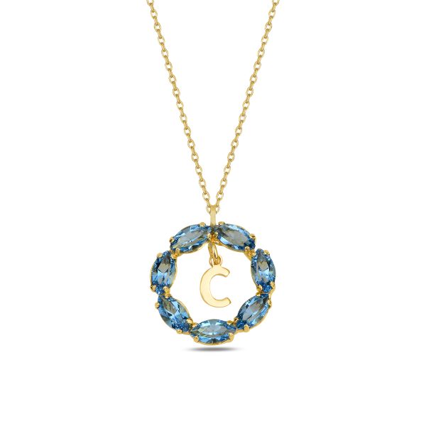 NEPTUN MAVİ GOLD SWAROVSKI C HARF KOLYE