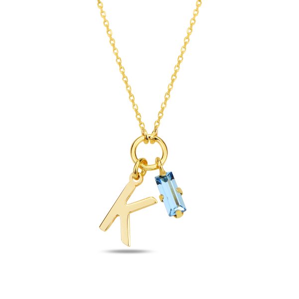 SPES MAVİ GOLD SWAROVSKI K HARF KOLYE